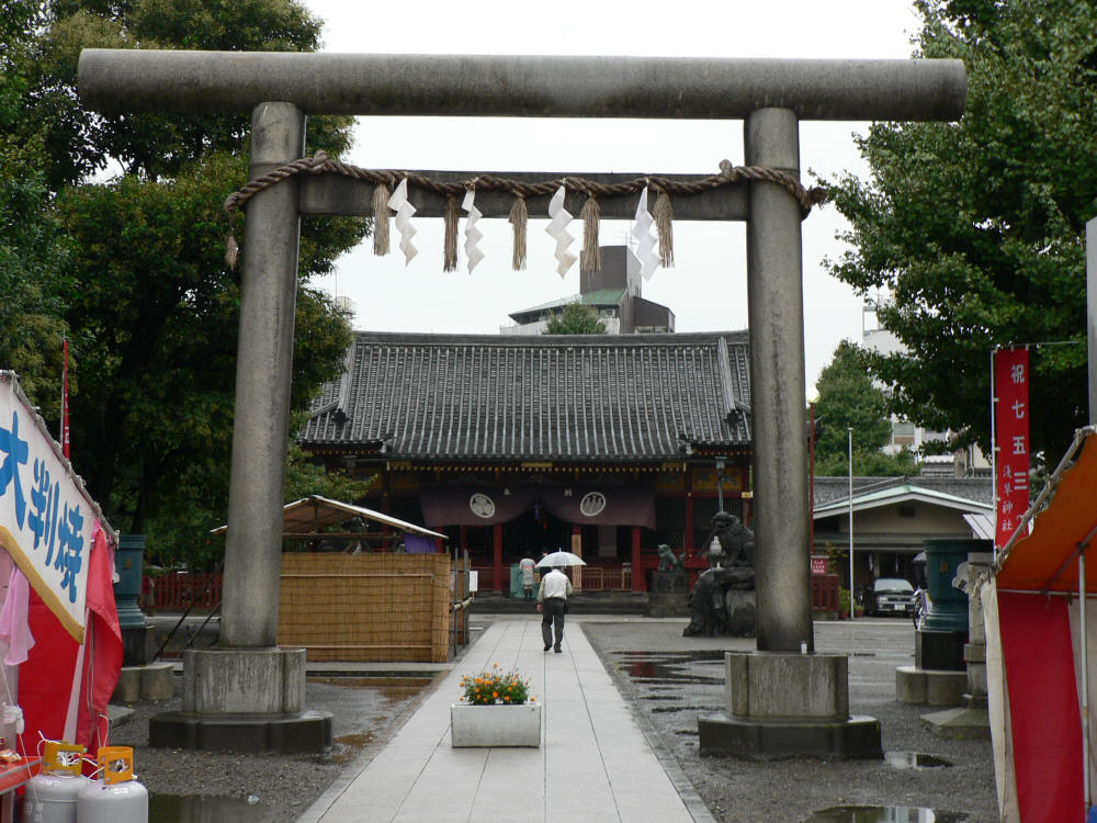 To the left of the gate is Asakusa Jinja Shrine