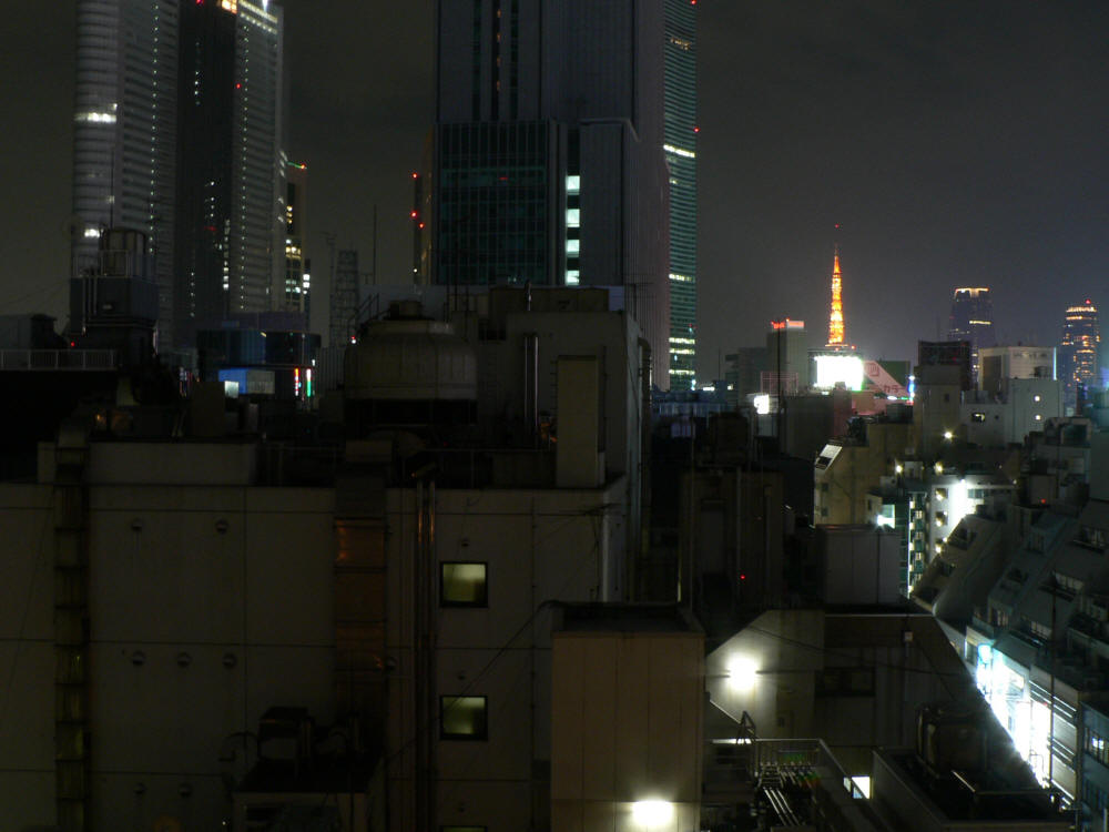 Outside my window at night... I still can't figure what the reddish-orange tower is. It's quite visible from Imperial Palace.